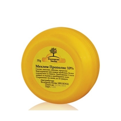 БИОХЕРБА МЕХЛЕМ С 10% ПРОПОЛИС 35 Г е изготвен от чист натурален пчелен клей, придобит по специална технология, както и ланолин и вазелин, внасяни за фармацевтични и козметични цели.